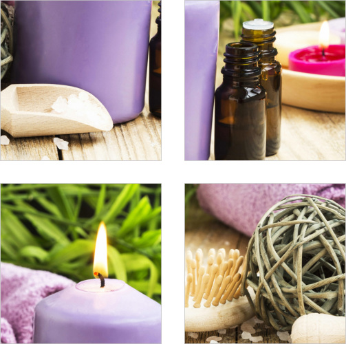 Fliesen-Aufkleber Fliesen-Bild Kerzen Salz Wellness SPA Violett Lila Deko Bad WC