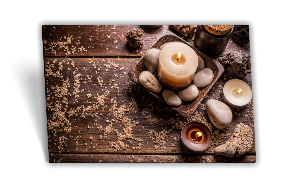 Leinwand-Bild Keilrahmen-Bild SPA Wellness Kerzen-Licht Braun Kristalle Deko Steine