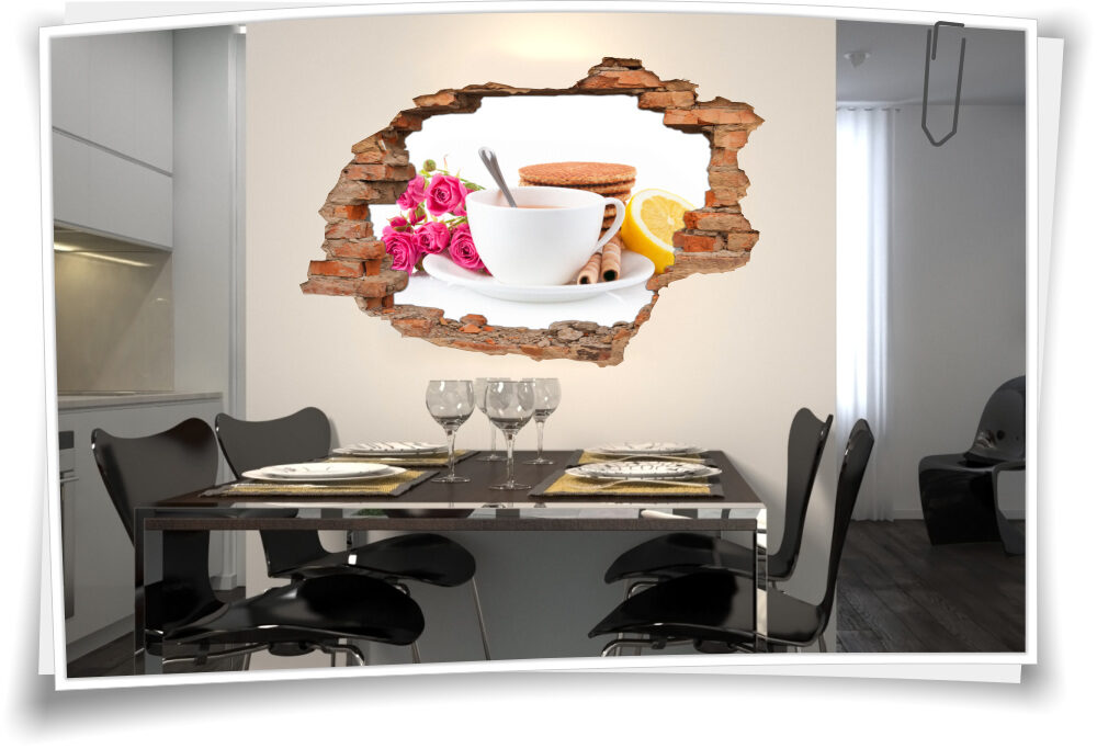 3D Wand-Bild Wand-Tattoo Wand-Aufkleber Kaffee-Tasse Kekse Rosen Zitrone Küche