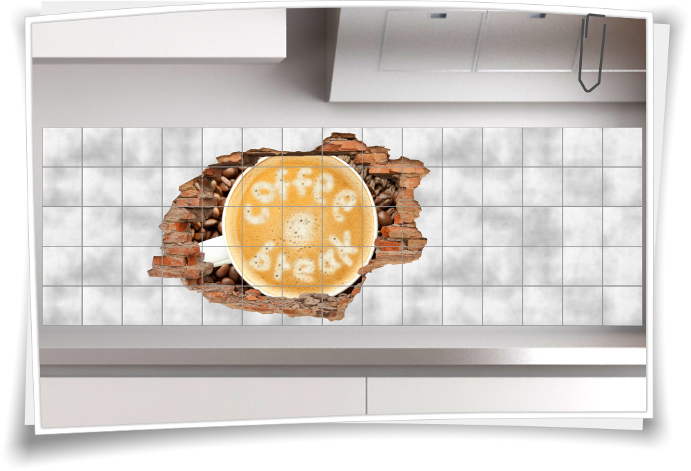 Fliesen-Bild Wand-Durchbruch 3D Fliesen-Aufkleber Kaffee-Tasse Kaffee-Bohnen Frühstück