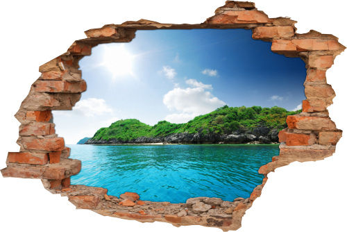 3D Wand-Bild Wand-Tattoo Wand-Aufkleber Insel Urlaub Meer Himmel Sonne Bäume