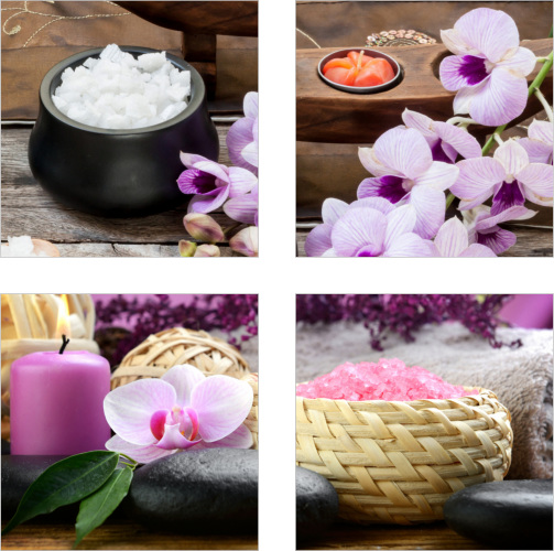 Fliesen-Aufkleber SPA Wellness Orchideen Salz Kerzen Steine Salz Bad WC Deko
